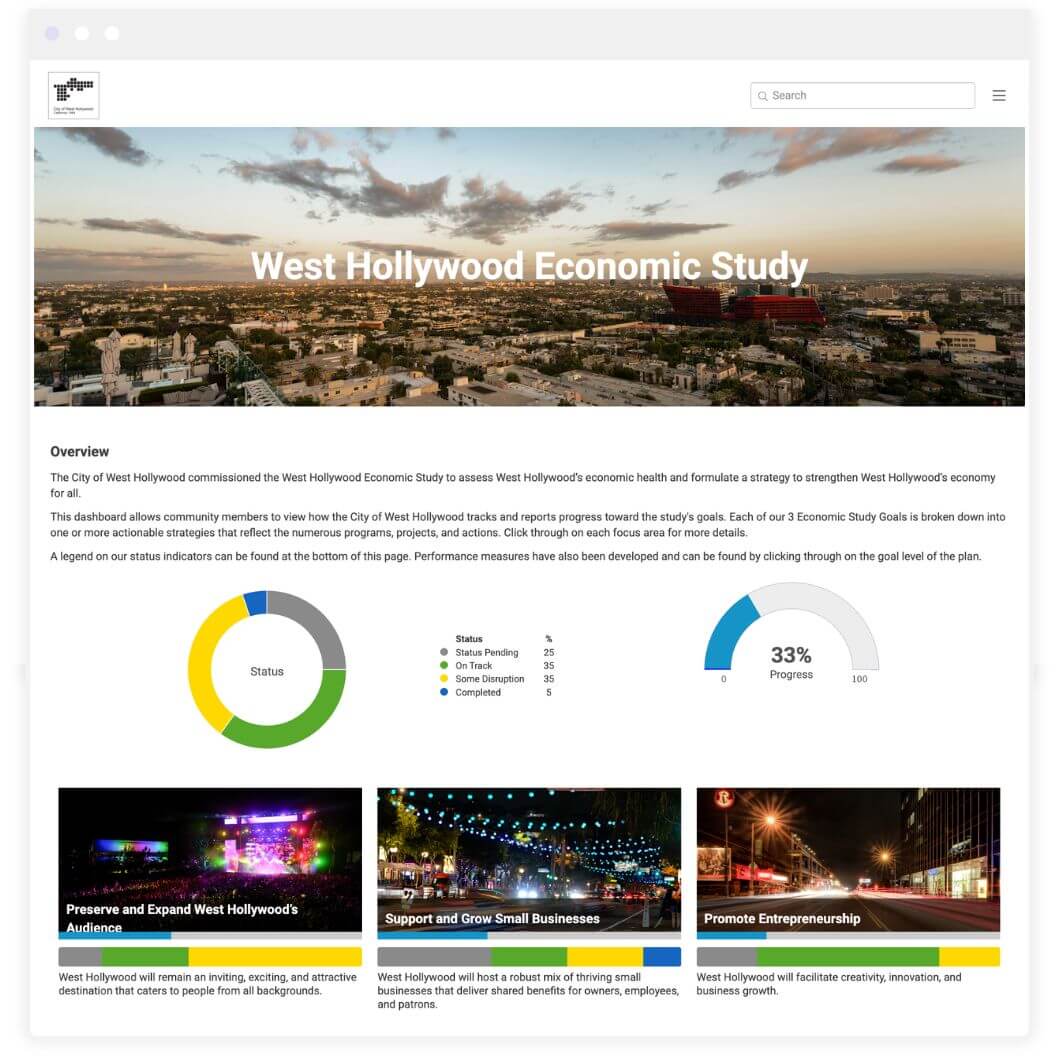West Hollywood has taken a strategic and transparent approach to economic development by using a public dashboard to track progress on its Economic Study.
